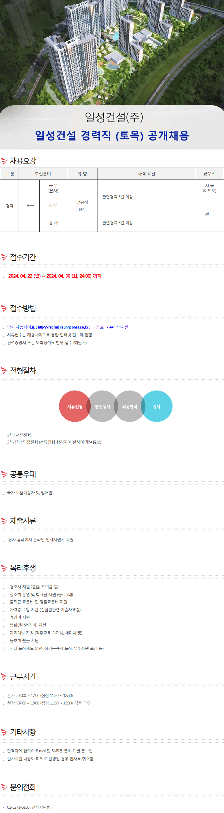 일성건설 [ 토목 ] 경력직 채용